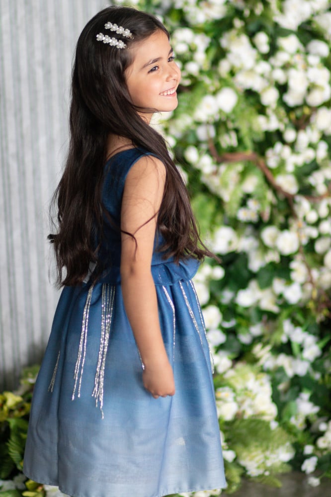 فستان اطفال ازرق إطلالة راقية لطفلتك. يظهر هذا الفستان الأزرق الأنيق طفلتك في أجمل صورة، حيث يتميز بتصميم رائع وبسيط يجمع بين الأناقة والراحة. تصميمه يتميز باللمسات العصرية وتفاصيل جذابة تضفي عليه لمسة من الفخامة، مما يجعله مثالي للمناسبات الخاصة مثل أعياد الميلاد، حفلات الزفاف، أو التجمعات العائلية.