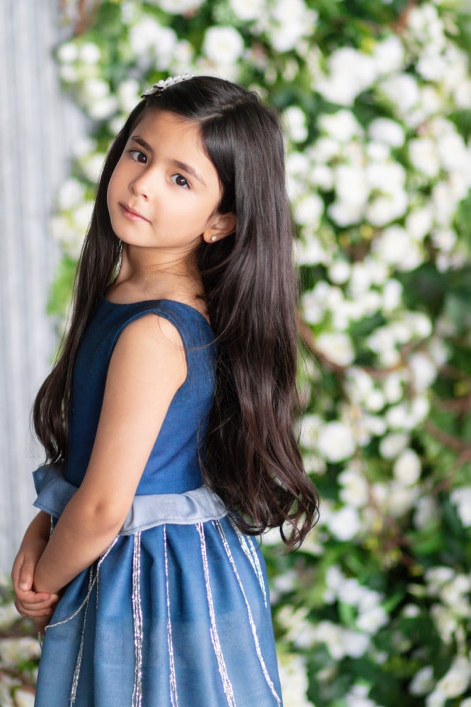 هذا الفستان الأزرق هو الخيار الأمثل لمنح طفلتك إطلالة مليئة بالبهجة والجمال.