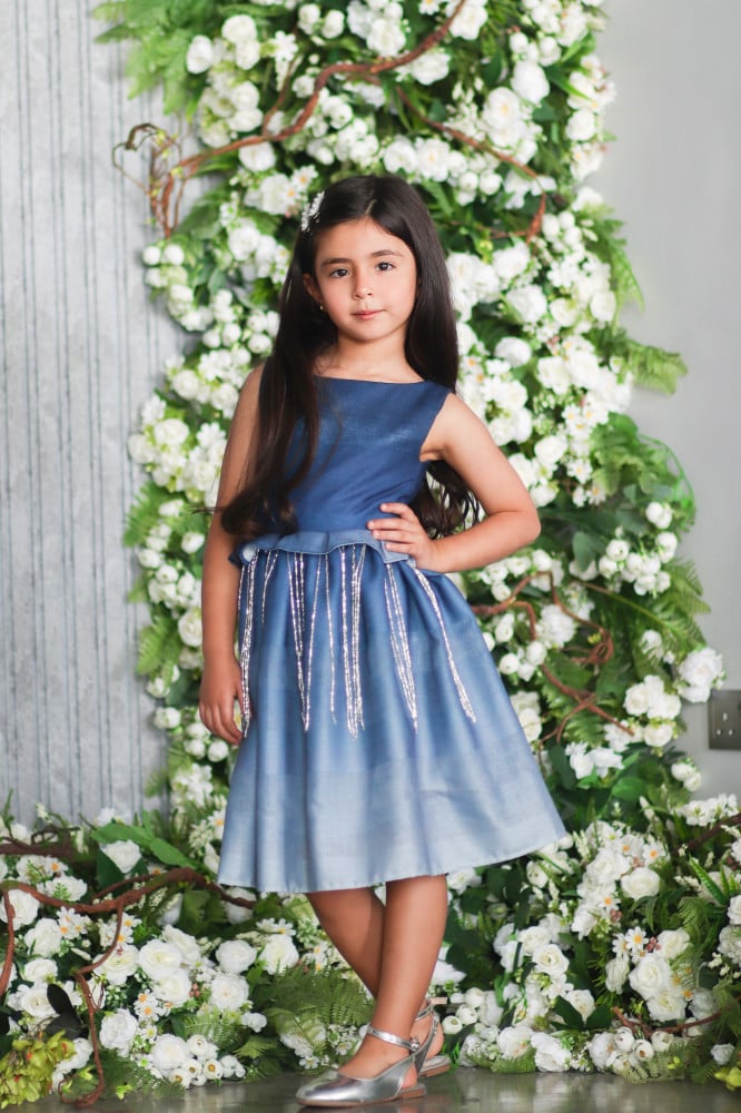 مميزات فستان اطفال ازرق ياقوت قصير: