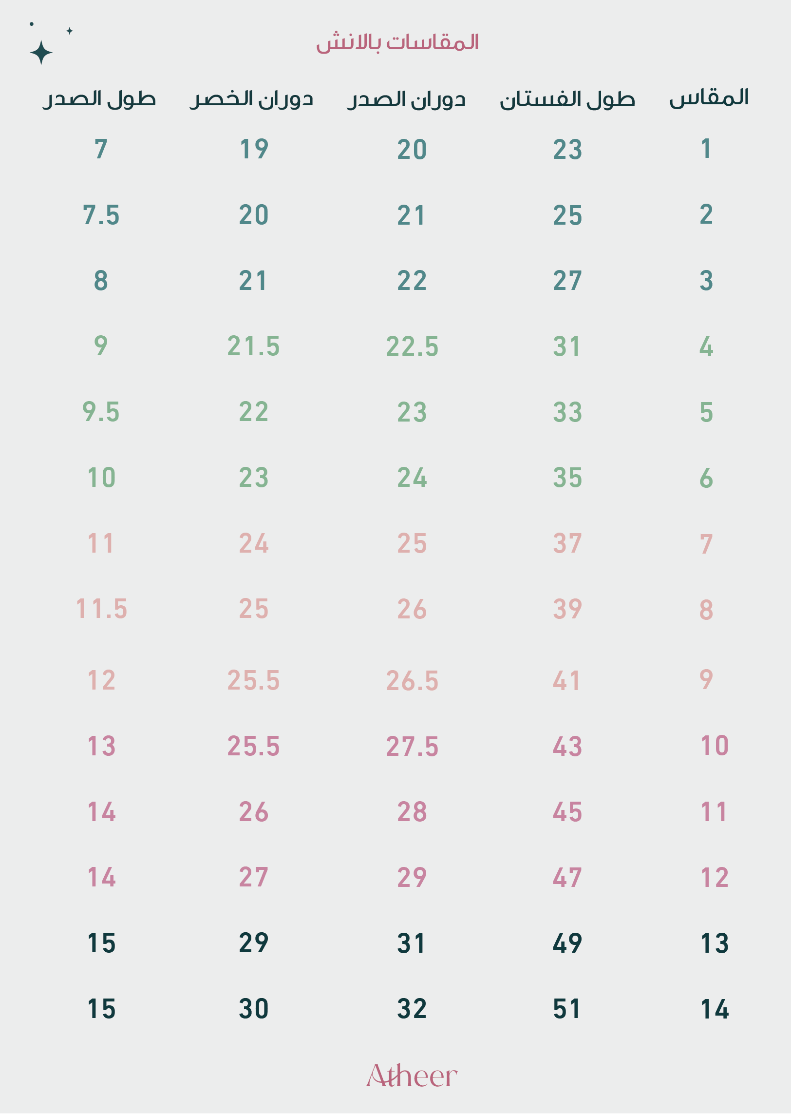- متوفر خدمة اخذ المقاسات و التعديل على التصميم حسب طلب العميلة.