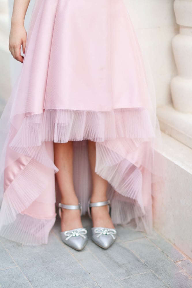 - الإغلاق: يحتوي الفستان على سحاب خلفي أو أزرار لتسهيل عملية ارتدائه وخلعه بسهولة.