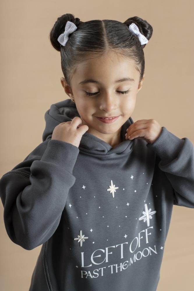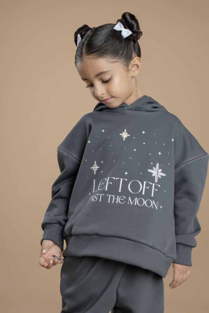 - التفاصيل المطبوعة: طباعة من الامام ونجوم بارزة عبارة "LET OFF PAST THE MOON" مع رسومات النجوم التي تضفي لمسة جذابة وعصرية.